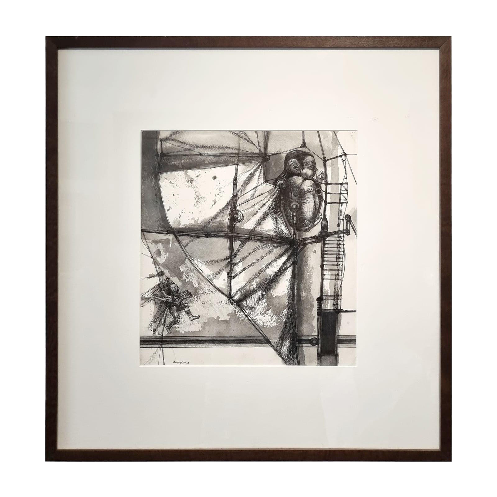 Desenho “Cidade dos Anjos I” do artista Sergio Rizo. A obra está emoldurada e em ótimo estado de conservação.