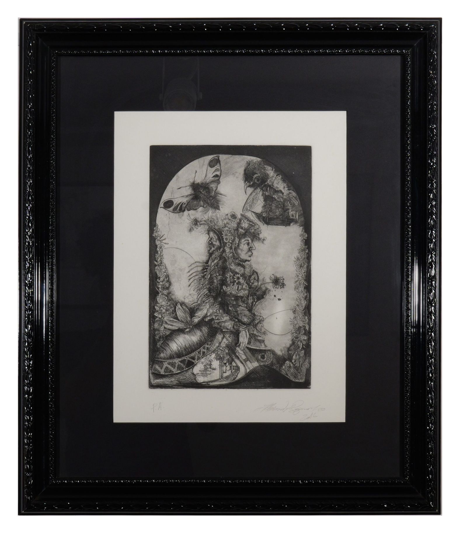 Gravura em metal de Alexandre Camanho de 2016, prova de artista, em excelente estado, emoldurada.