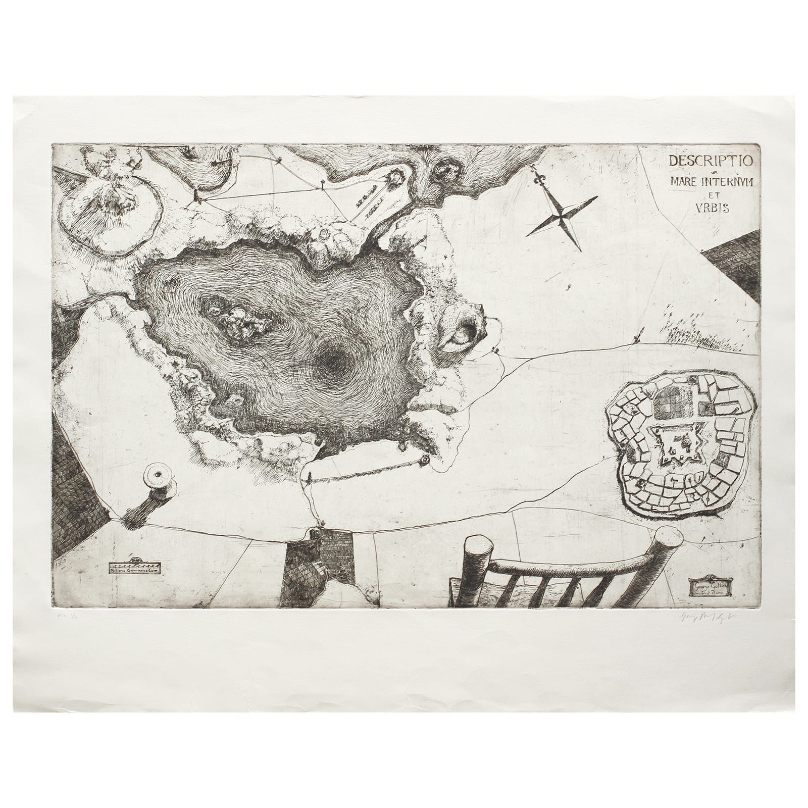 Gravura em metal do artista George Gutlich, prova de artista I de V.