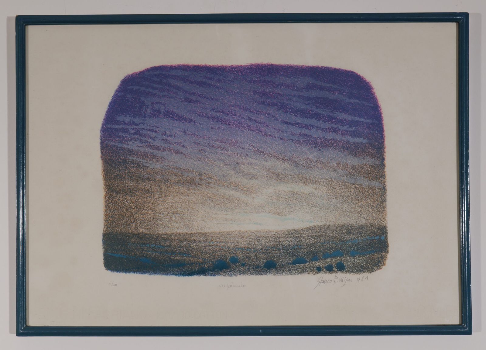 Litografia do artista Glauco Rodrigues intitulada “Crepúsculo” . Exemplar 1 de 70. ano de 1981