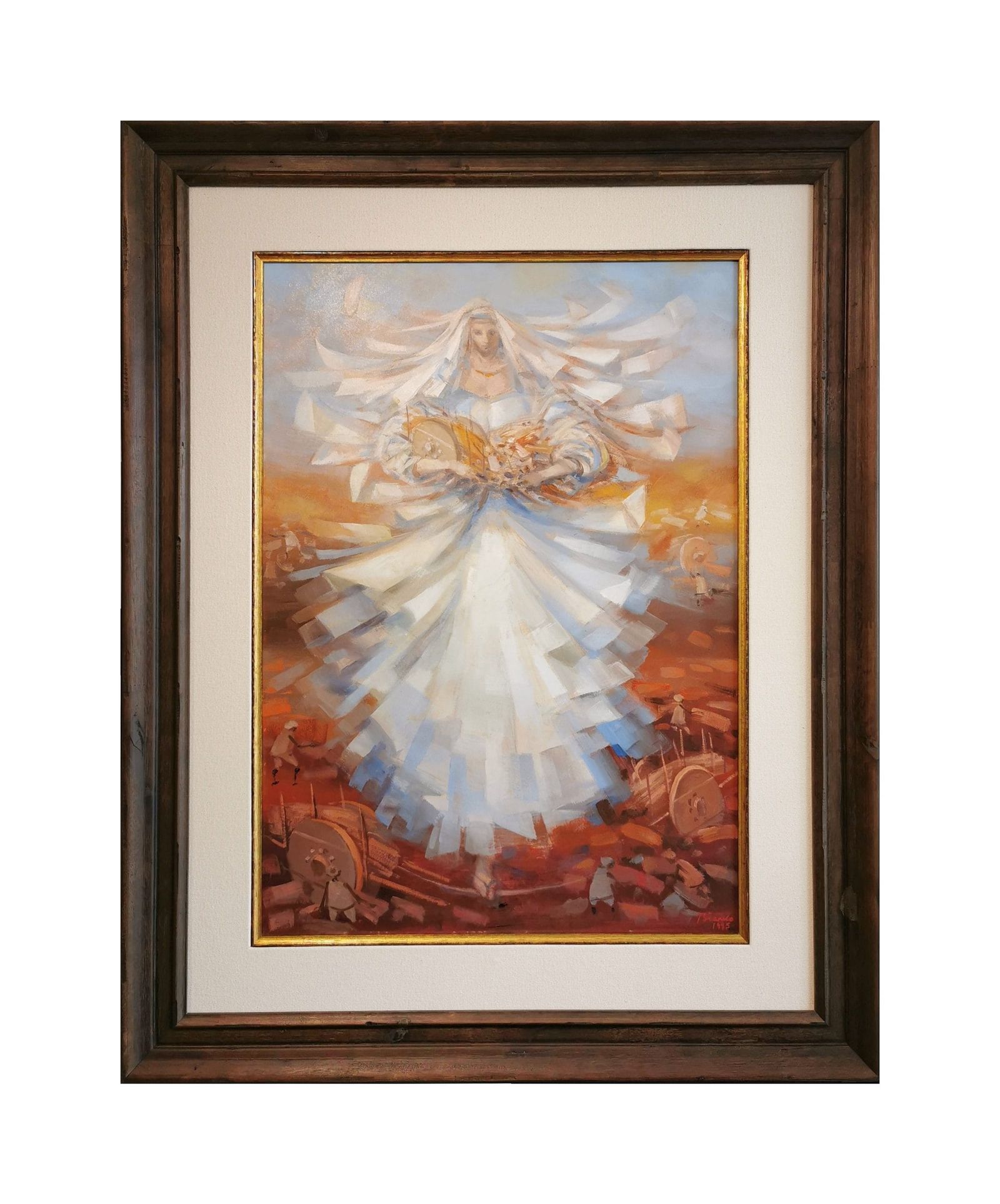 Pintura a óleo de Enrico Bianco, intitutala “Madona do trigal”, de 1995, emoldurada e em excelente estado.
