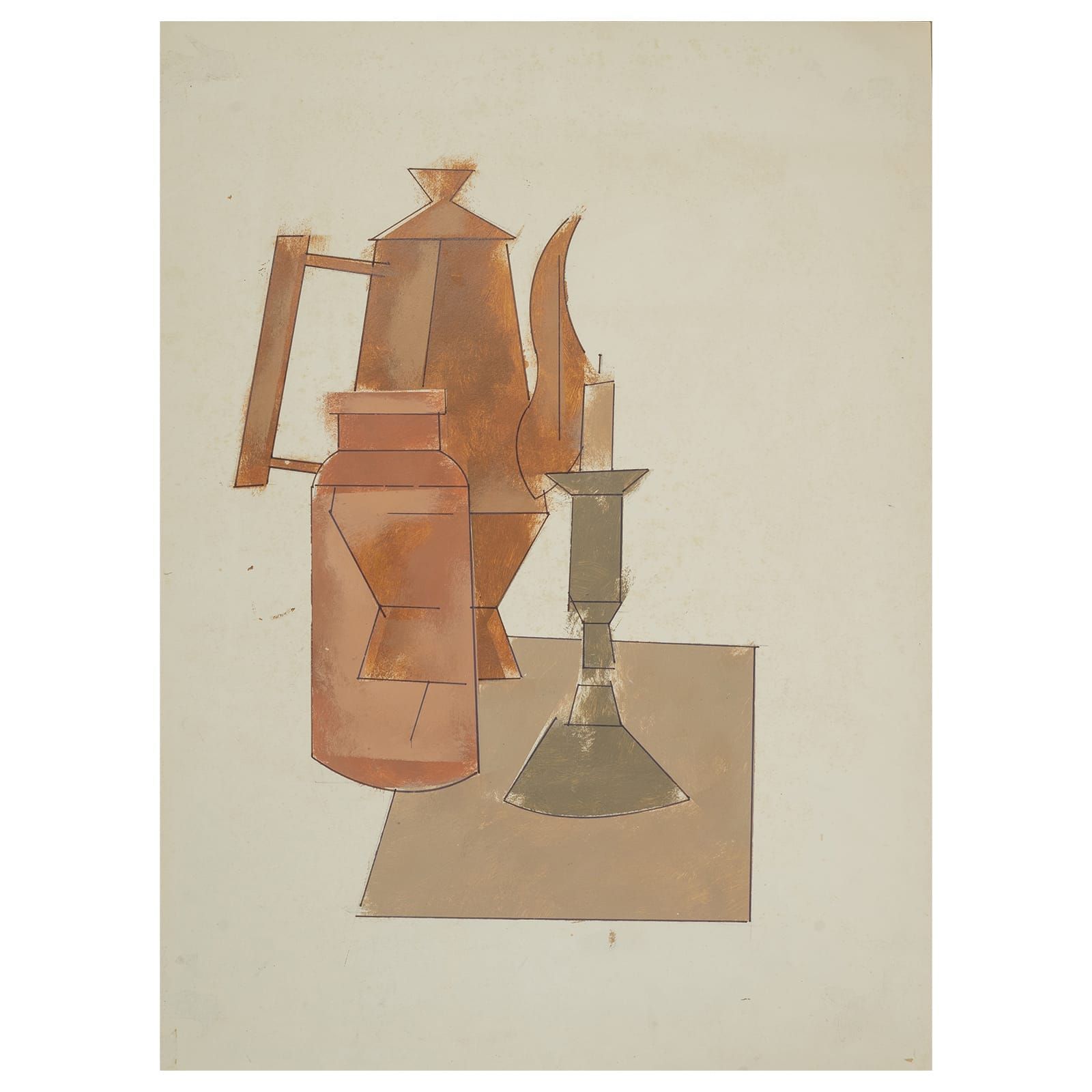Pintura sobre papel do artista Carlos Scliar, estudo para serigrafia editada pela Lithos.