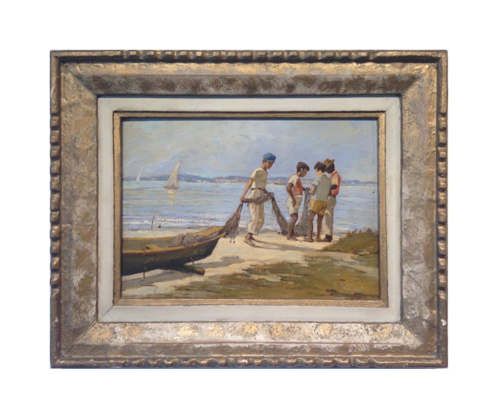 Pintura a óleo sobre tela de Sílvio Pinto, de 1946, emoldurada.