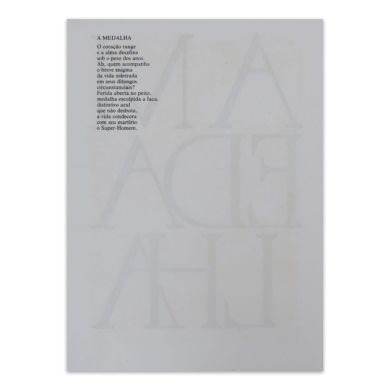 Folha aberta com poesia: 77,3 cm x 38,5 cm